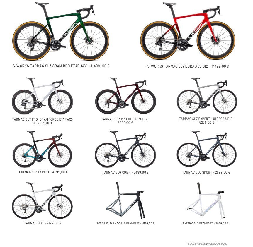 Welke fiets kies je voor de etappe van vandaag? Komt het op brute kracht aan in een explosieve eindsprint of zweef je zo licht mogelijk de steile beklimmingen omhoog? Vroeger had je hier twee verschillende fietsen voor nodig maar die dagen zijn voorgoed voorbij. Met de Tarmac SL7 hoef je geen compromissen te maken tussen aerodynamica en gewicht. De profrenners in het tourpeleton laten dit jaar dan ook zien hoe divers de SL7 ingezet kan worden. Alaphilippe, Cavandish en onze eigen Kelderman rijden allemaal op deze nieuwe Tarmac. One Bike to rule them all!