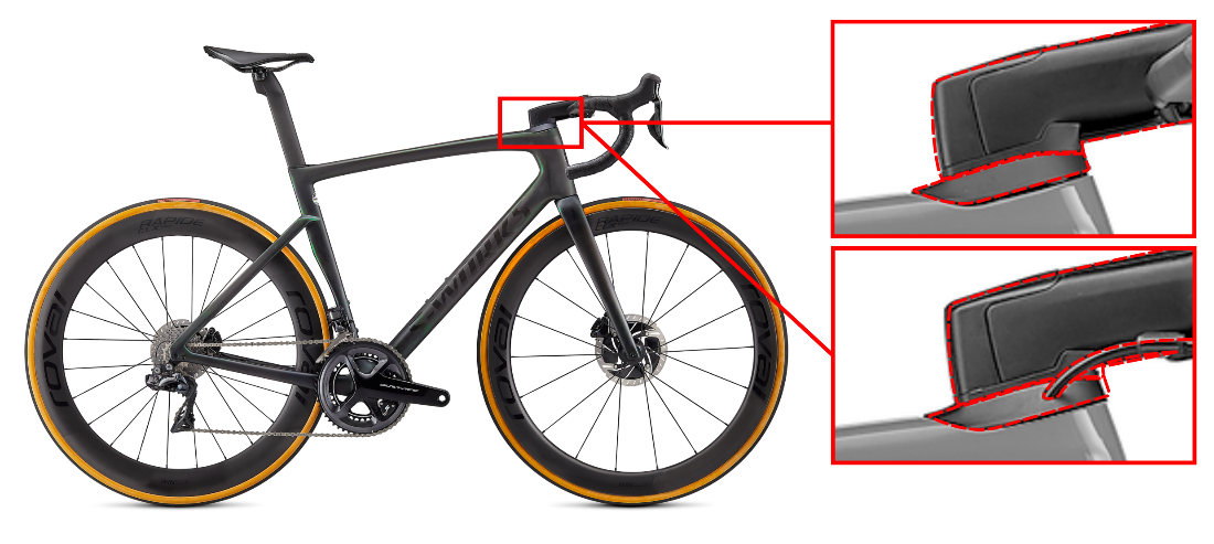 BETROKKEN PRODUCT: Alle Tarmac SL7-fietsen en -framesets verkocht aan en geleverd bij jou vóór de aankondiging van deze terugroepactie (juli 2020 – augustus 2021). ‘Tarmac’ is geschreven op de achterkant van de zadelbuis van de fiets. Tarmac SL7-modellen kunnen van oudere Tarmac-modellen worden onderscheiden door hun geïntegreerde (verborgen) kabelgeleiding door het balhoofd (zie bovenstaande foto). Voor meer informatie, ga je naar www.specialized.com/safety-notices.